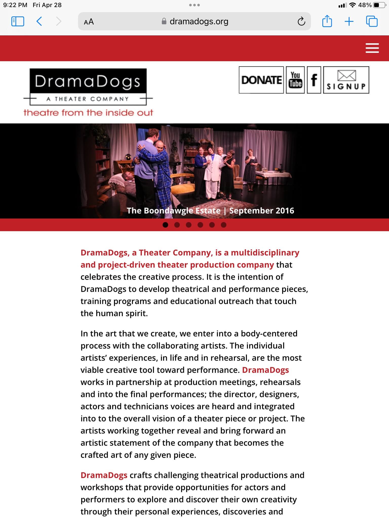 DramaDogs, a Theater Company, is a multidisciplinary and project-driven theater production company that celebrates the creative process. This site, featuring a bold WordPress design by Suzanne Verba-Hopkins informs the public of upcoming performances and serves as an archive of past achievements. We used the Object Toolbox to simplify content management.
