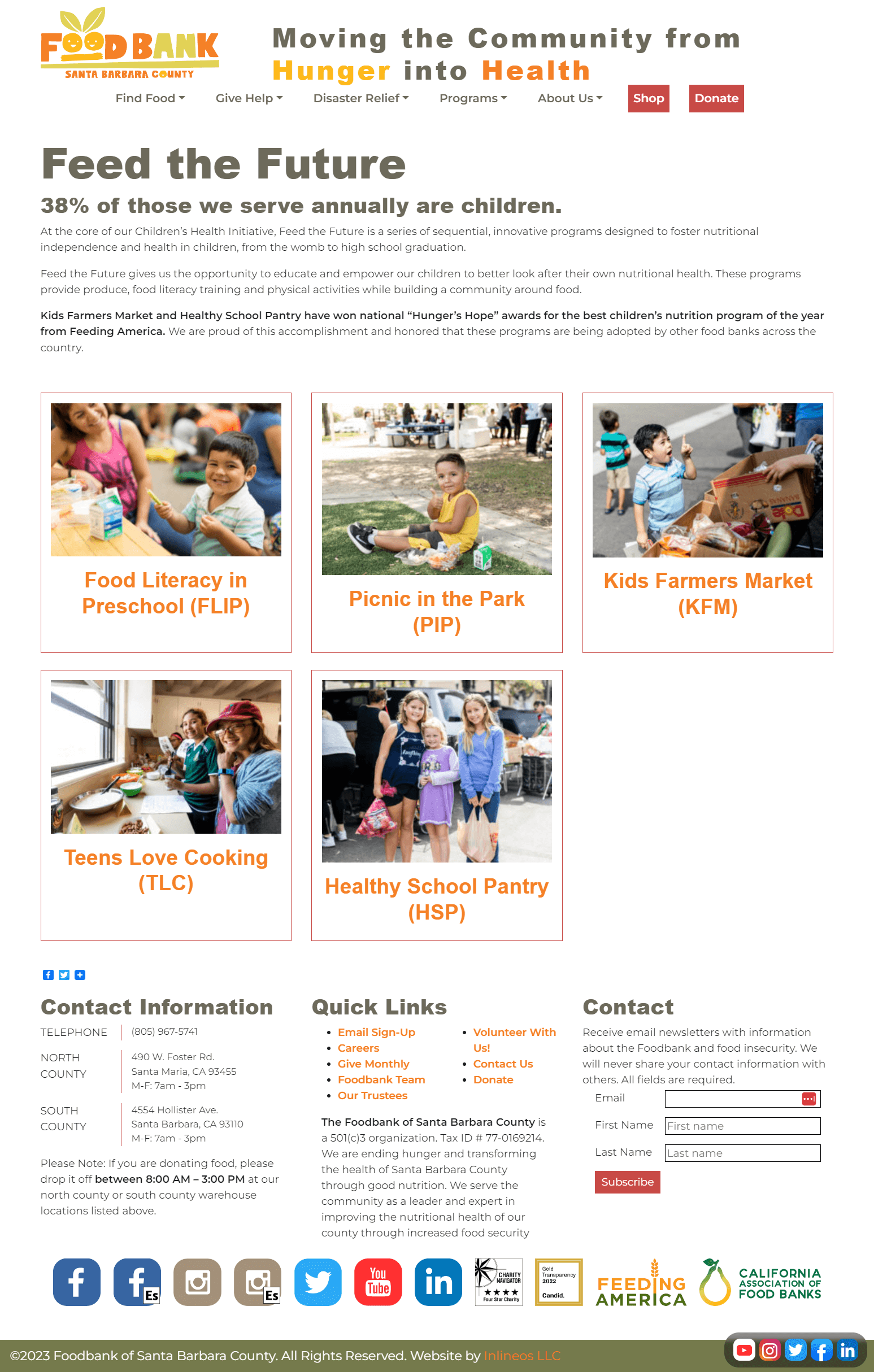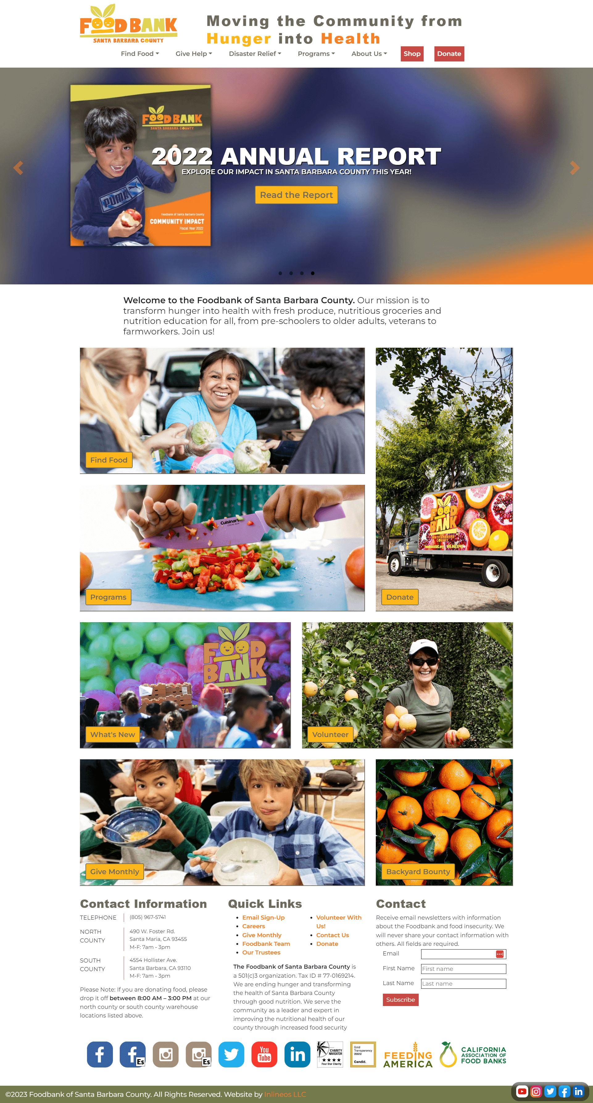 Foodbank of Santa Barbara County’s mission is to end hunger and transform the health of Santa Barbara County through good nutrition. Inlineos maintains the Web site and performs Web marketing for this essential non-profit. After the Foodbank completed a rebranding project, Inlineos rebranded the site, giving it a mobile retrofit as well. Inlineos built an online store and integrated it with the organization’s Salesforce CRM system. Other customized components make use of our Object Toolbox and Content Modules.